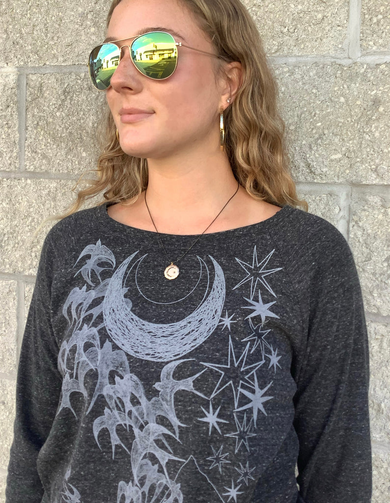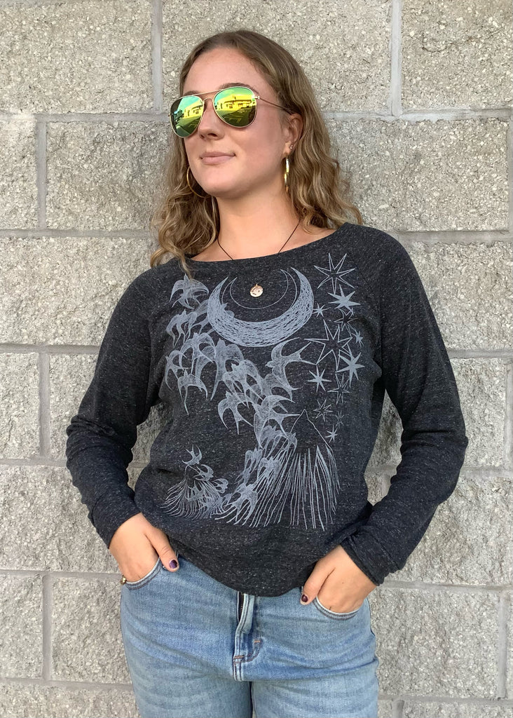 This artist-made, hand-screen printed tee will update your wardrobe with raglan sleeves and a slightly cropped fit.